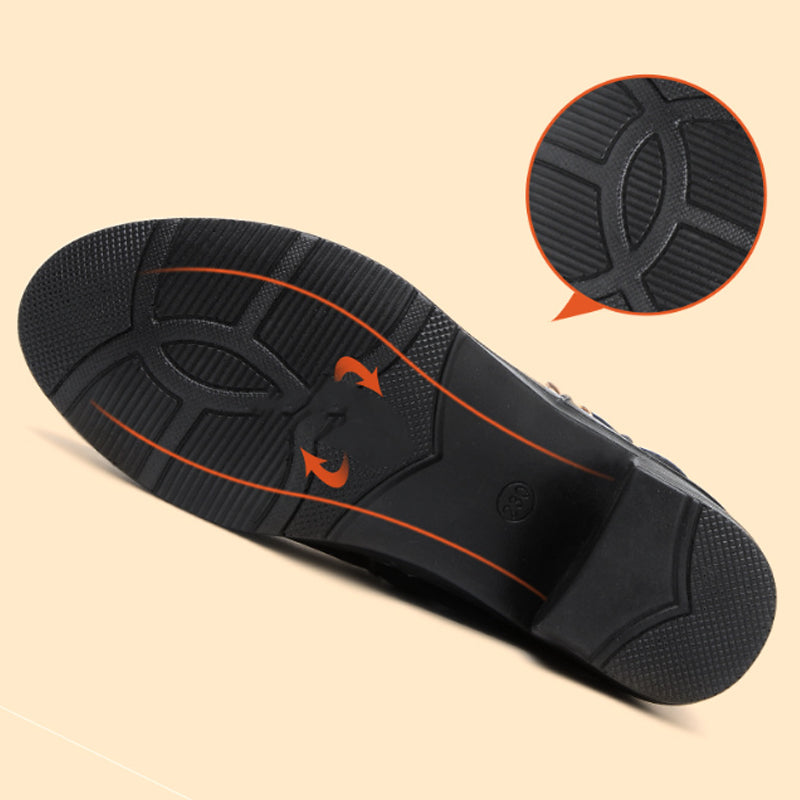 ANTI-SLIP POLYURETHANE OUTSOLE:ย Walk with confidence on various surfaces. The durable sole features a deep tread pattern designed for superior traction, significantly reducing the risk of slips and falls on wet or slippery ground.